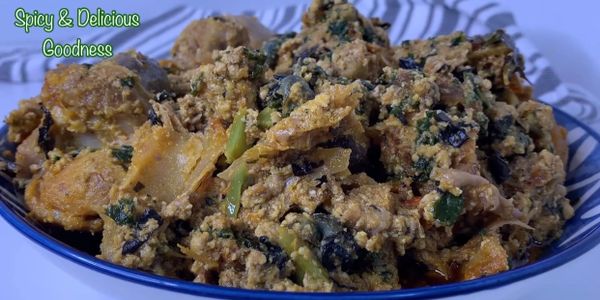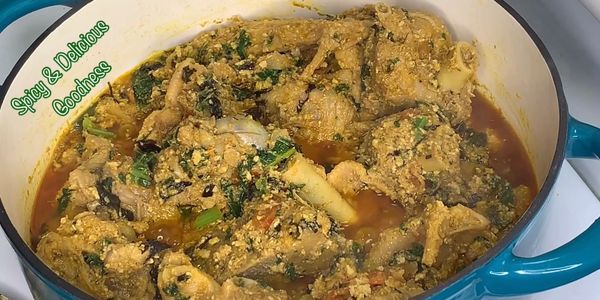 - Add 2 - 3 tbsp hot water to the remaining ground egusi and mix until it forms a thick paste. Transfer to a mortar and pound until it looks stiffer and glossy. Mold into little balls of your desired size then add to the pot of soup. Cover and let it cook on low heat for about 20 minutes untouched.